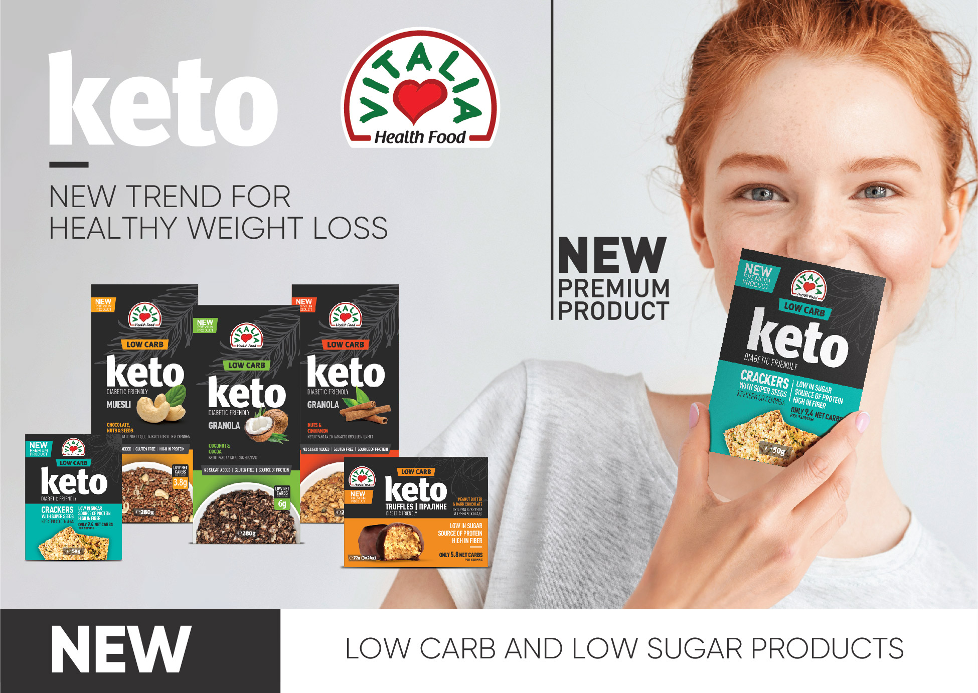 If polyols and sugars are subtracted, the Vitalia KETO line has the following values of net carbohydrates per serving: