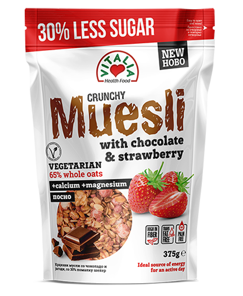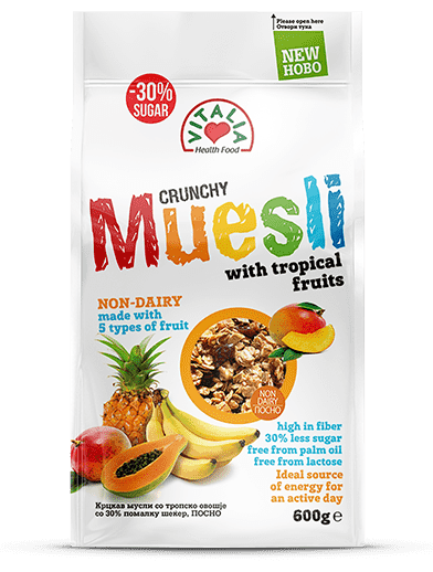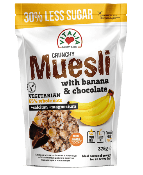 Vitalia Crunchy muesli is a healthy, high-quality food produced according to an original recipe. It is a natural source of important nutrients and an ideal source of energy for an active day. Perfectly served with milk or yogurt, it provides a light and delicious meal.