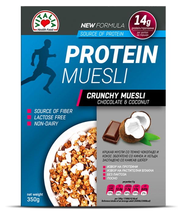 View DetailsStart the day with a healthy and original protein meal from Sport muesli with coconut and dark chocolate. Super nutritious and original mix of high quality proteins, buckwheat, coconut leaves and dark chocolate pieces, additionally, sweetened with brown unrefined sugar.