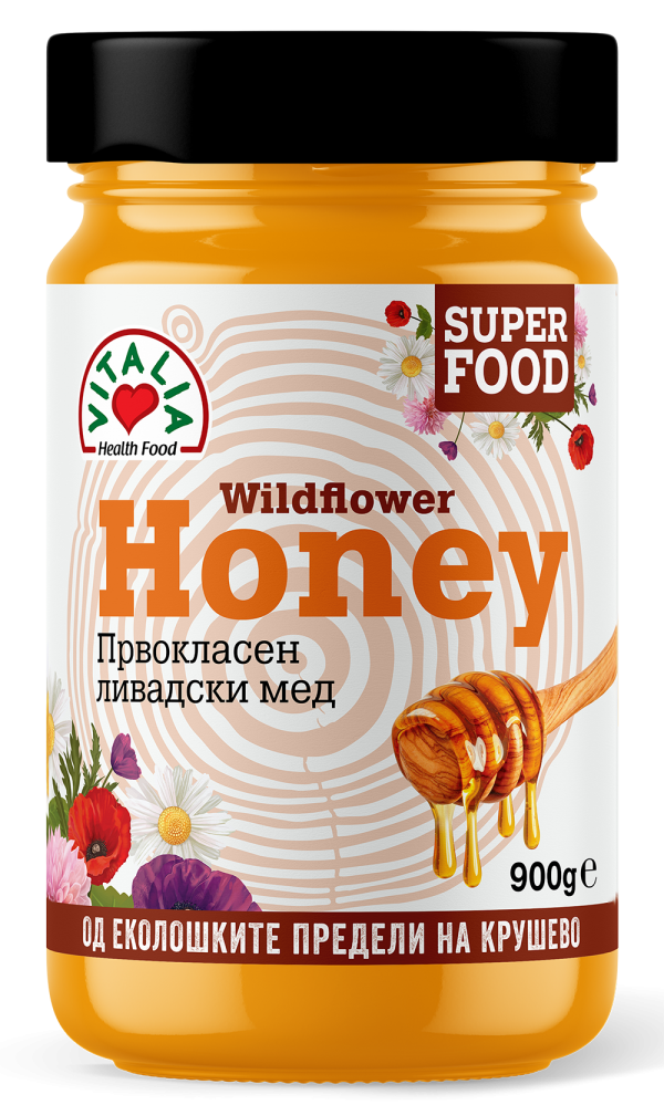 Vitalia wildflower honey comes from the ecologically pure regions of Krusevo, Macedonia. It has a distinctive and pleasant taste and aroma. Wildflower honey can be found in multiple colours: from light yellow to an almost dark brown colour.