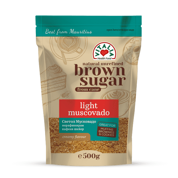 View DetailsThe brown sugar Light Muscovado from Vitalia originates from the island of Mauritius in South Africa, where the tropical climate and uncontaminated soil enable the production of unrefined sugar with the highest quality in the world. Vitalia brown sugar is produced in a simple manner so as to retain, and not remove, the natural molasses of the sugar cane.