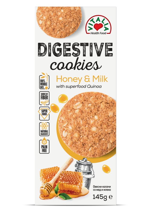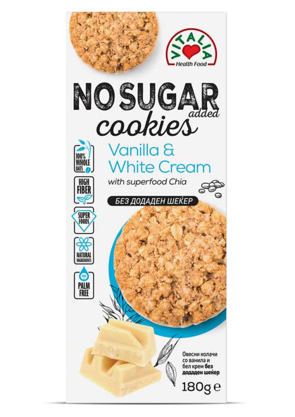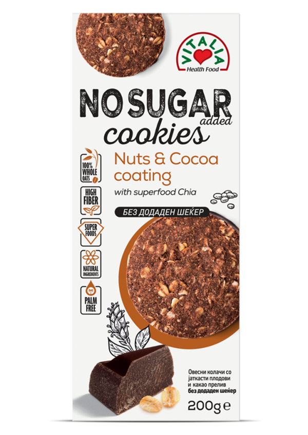 Виталиа овесните колачиња со јатки, семиња и темно чоколадо имаат природен вкус и се подготвуваат според уникатен рецепт, без додаден шеќер.