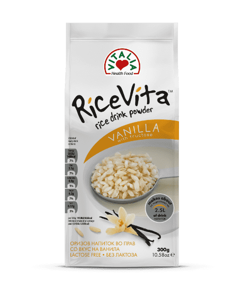 RiceVita 10 vitamins + Ca – rice milk powder with natural vanilla flavour and aroma and a well-balanced nutritional profile. Beverages prepared with RiceVita have a distinctive aroma and flavour which reminds of the traditional sutliash. The rice milk is rich in slow combustion sugars, essential amino acids, vitamins and minerals.