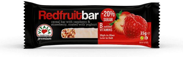 The cereal bar with red fruits and yogurt coating is an amazing mix of crunchy cereals and red forest fruits. It is supplemented with vitamin B, a full yogurt coating and enriched with calcium. It is a healthy, sweet snack with 100% natural ingredients which charmingly bring to you the incredible taste of nature and give you energy when you need it the most.