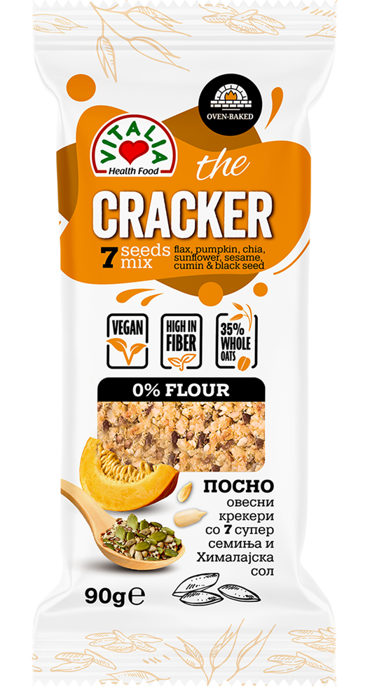 New healthy products from Vitalia, the power of oats transformed into salted crackers, healthy substitute of the high calorie snacks. Try the new oat crackers with mixed vegetable and pumpkin seeds. Original and delicious fusion of 35% oat flakes combined with wholegrains- wheat, corn and rice.