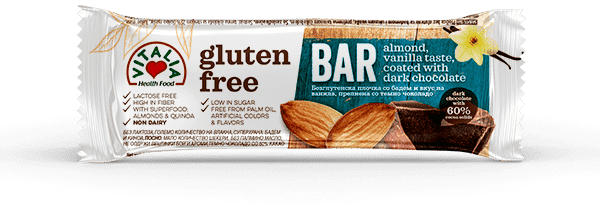 These gluten free bars are made from superfood quinoa, almonds and dark chocolate sweetened with stevia. New combination of healthy ingredients rich in essential macronutrients.